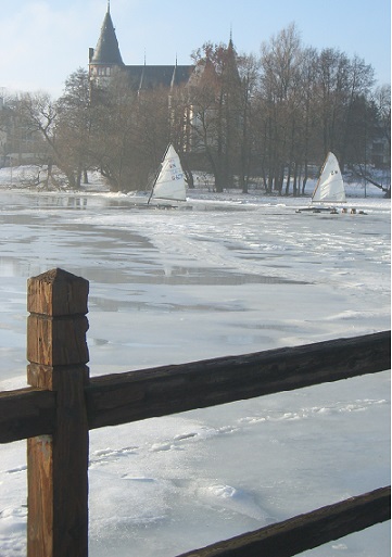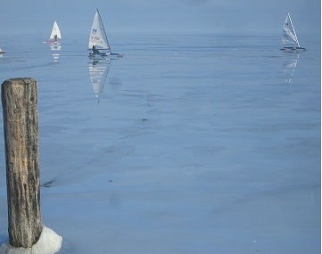 - hier Eissegeln auf der Müritz vom Yachthafen Klink aus.
