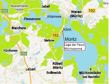 Der Erholungsort Klink liegt zwischen den Seen Müritz und Kölpinsee. Kurz vor der Ortseinfahrt haben Sie einen wunderschönen Blick auf beide Seen. Das Ferienhaus selbst liegt ca. 200 m von der Müritz entfernt.